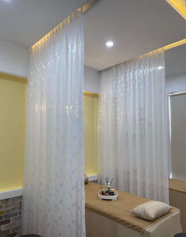 Rèm voan spa được cấu tạo từ các sợi nhân tạo, có độ mềm mỏng và độ rủ nhất định. Rèm thường được sử dụng để ngăn cách không gian tại spa. Tạo không gian riêng tư, giúp khách hàng khi đến chăm sóc tại spa được thư giản, thoải mái. Từ đó tăng hảo cảm cũng như đánh giá cao về chất lượng dịch vụ tại đây.