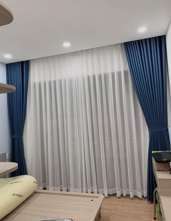 Kết hợp rèm 2 lớp (voan + vải dày) để vừa thẩm mỹ vừa linh hoạt điều chỉnh ánh sáng.